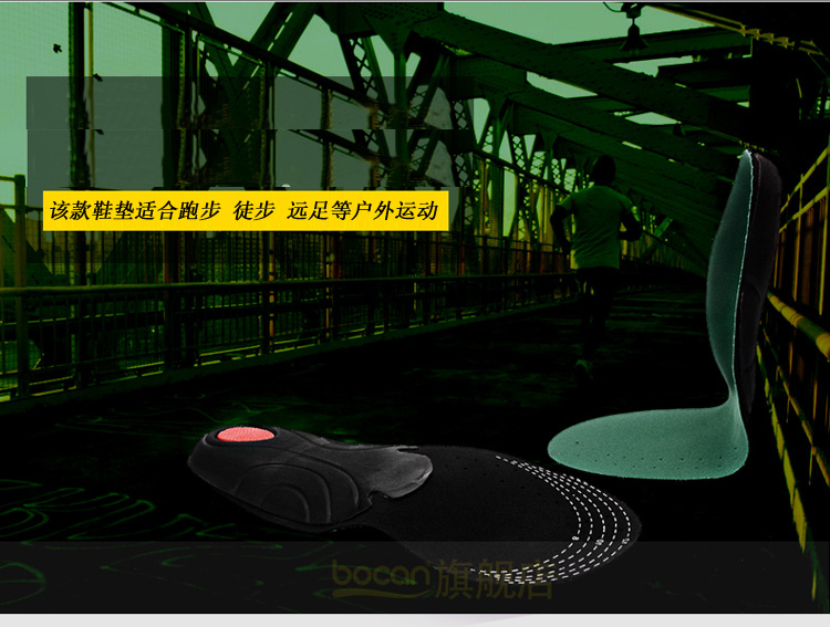 bocan慢跑鞋垫 户外 军训 硬质线壳 足弓保护 天鹅绒布面吸汗 可裁剪