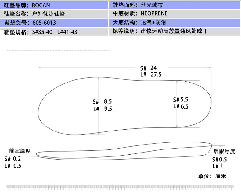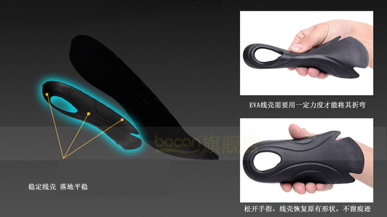 bocan鞋垫男女专业运动快跑步鞋垫旅游徒步高足弓支撑减震防护