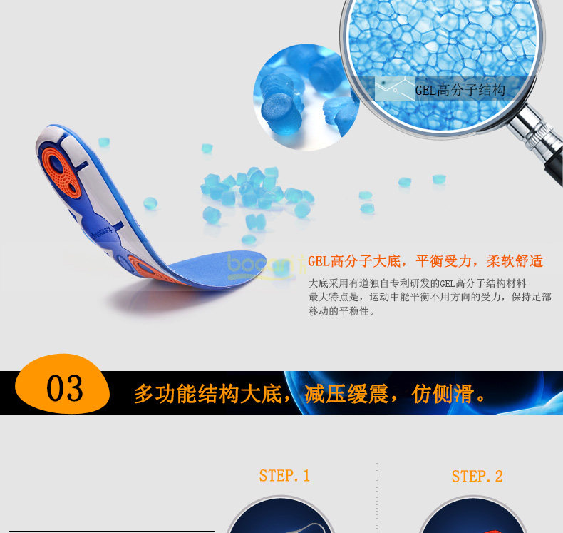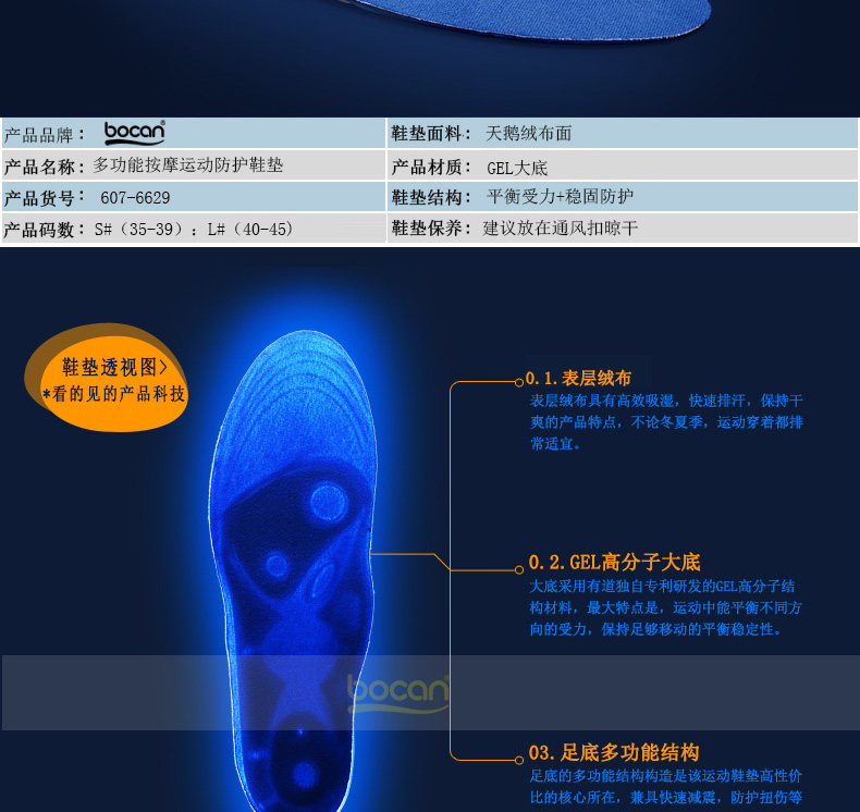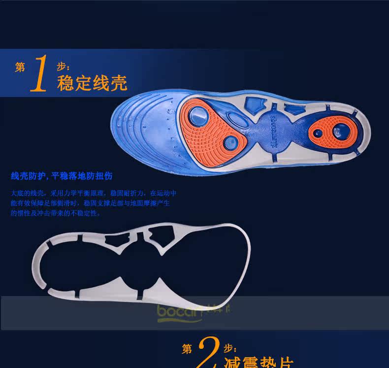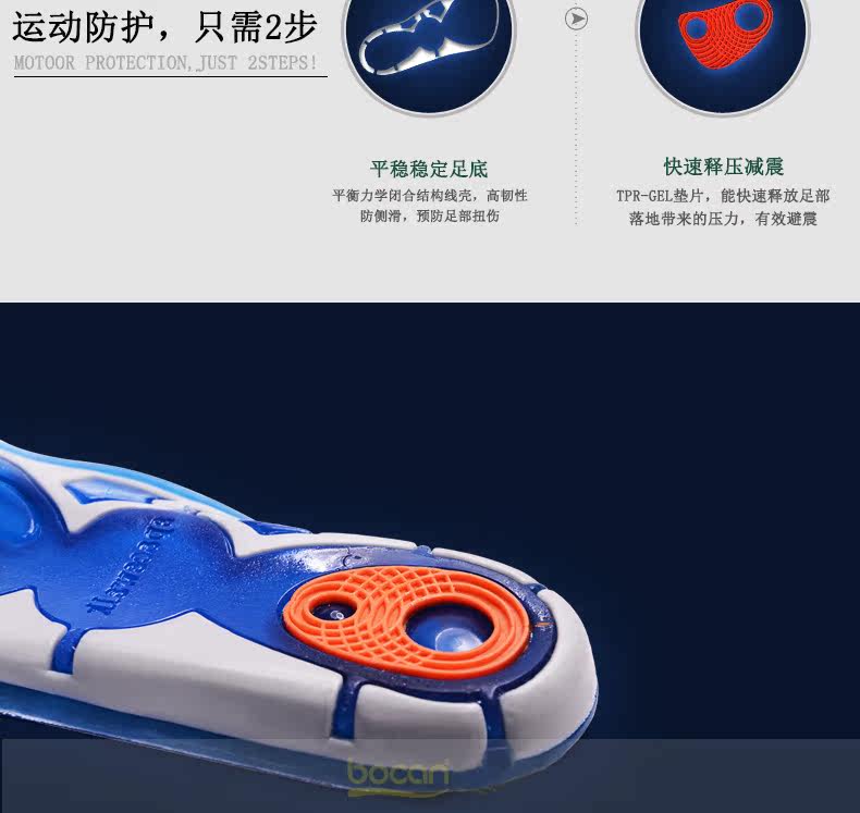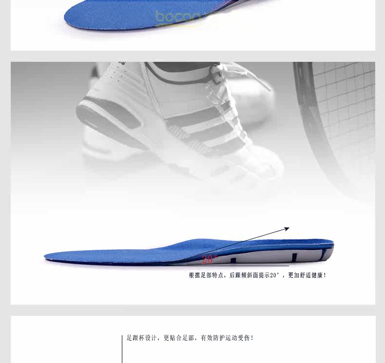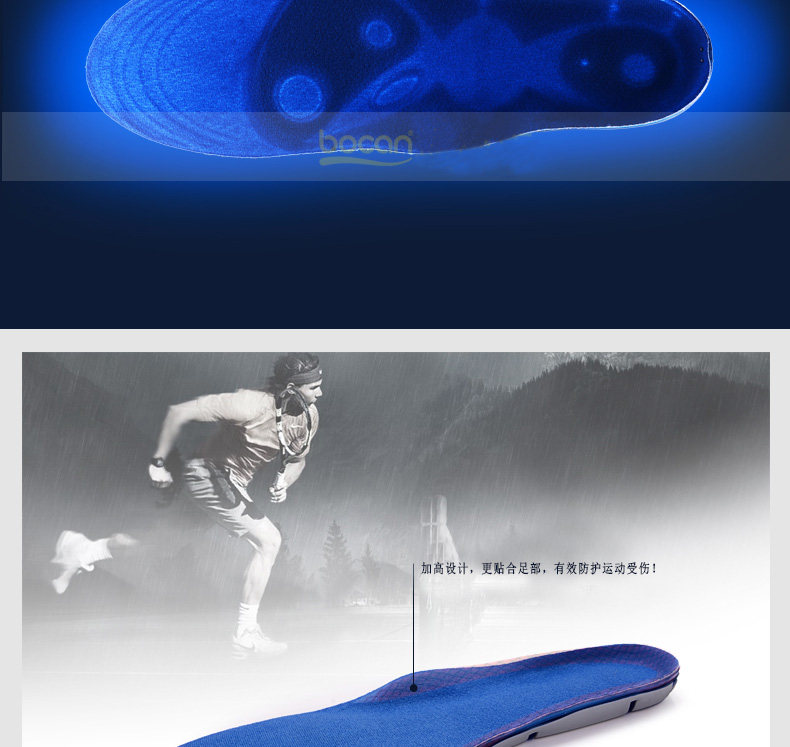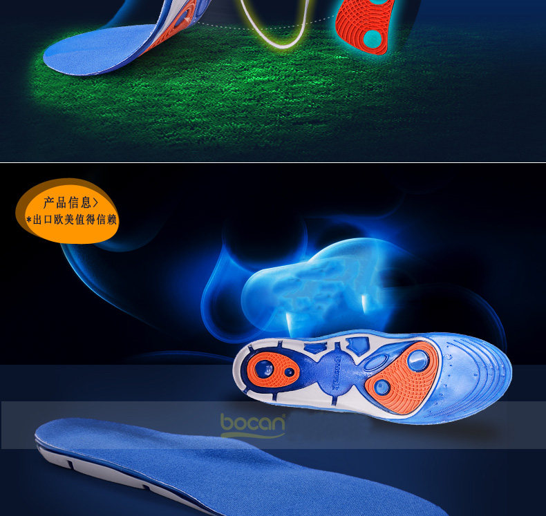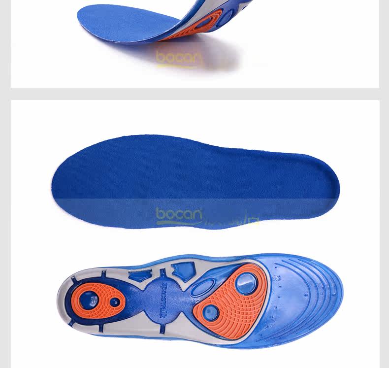 bocan 硅胶运动鞋垫男女跑步鞋垫减震 军训抗菌 除臭防臭吸汗春夏