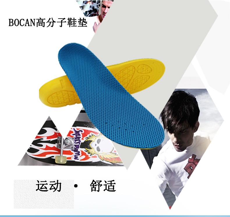 bocan运动鞋垫男女 加厚PU材料 吸汗透气防护篮球羽毛球 军训运动鞋垫 可裁剪