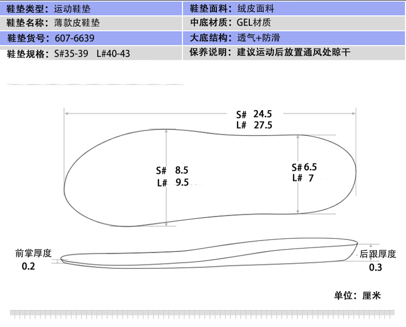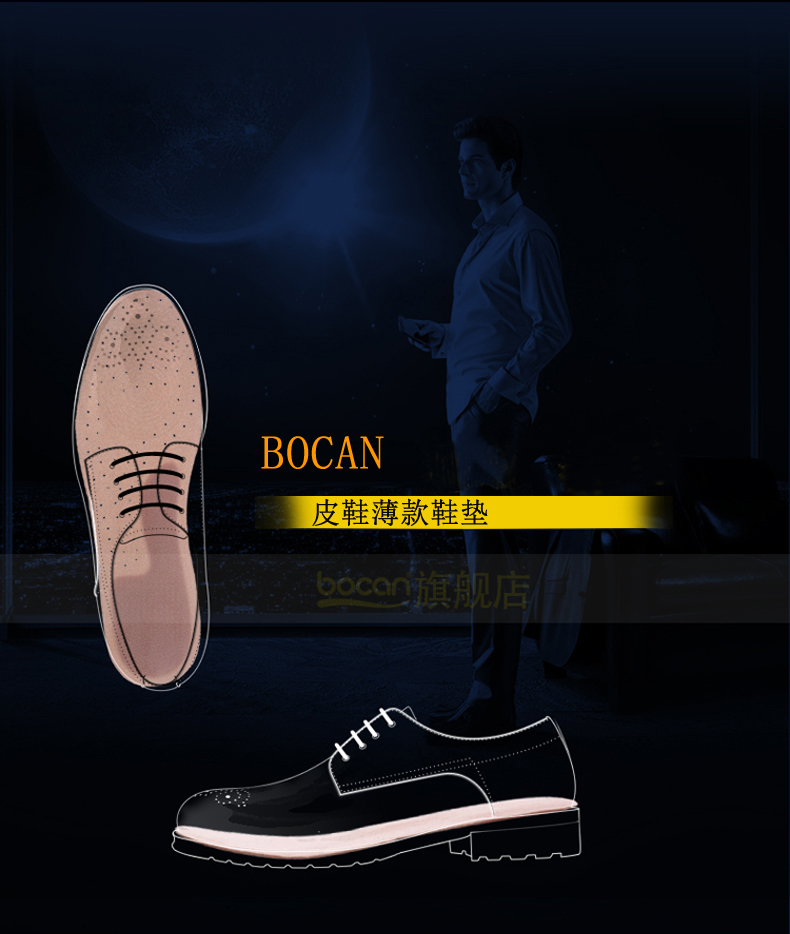 bocan爽系列鞋垫 透气 吸汗 舒适 薄 吸汗 皮革 商务皮鞋专用 可自由裁剪