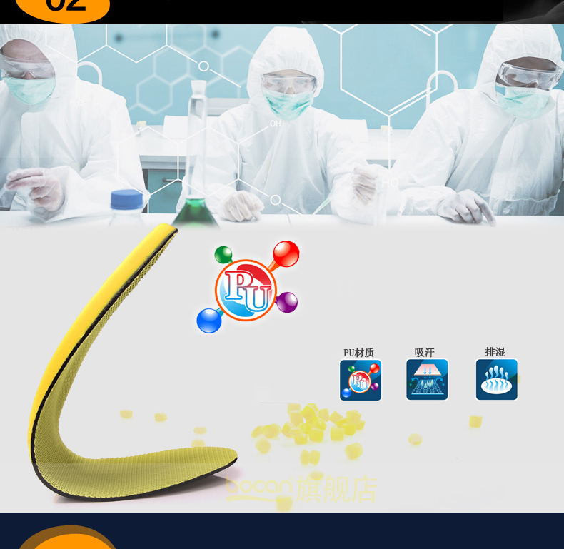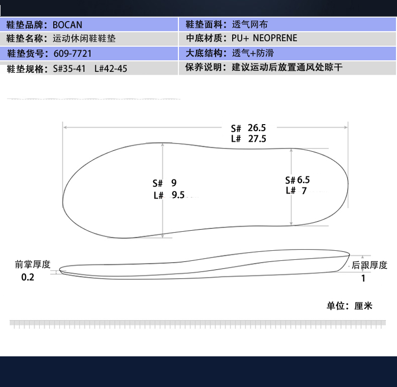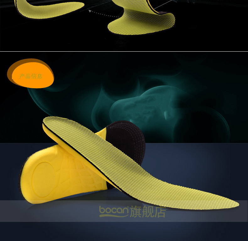 bocan商务防护PU鞋垫 足弓部位休闲鞋垫 男女款可自由裁剪