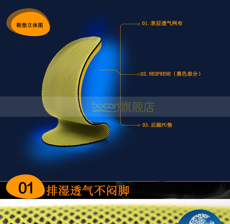 鞋垫面料:网格布面
